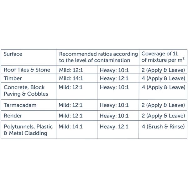 Actiwash affects the proteins and cell membrane of microorganisms, consequently causing the release of nitrogen and phosphorus from cells. Where an apply and leave application is used, the processes of natural weathering work to eliminate the dead biofilm staining.