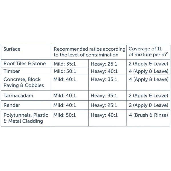 Actiwash affects the proteins and cell membrane of microorganisms, consequently causing the release of nitrogen and phosphorus from cells. Where an apply and leave application is used, the processes of natural weathering work to eliminate the dead biofilm staining.