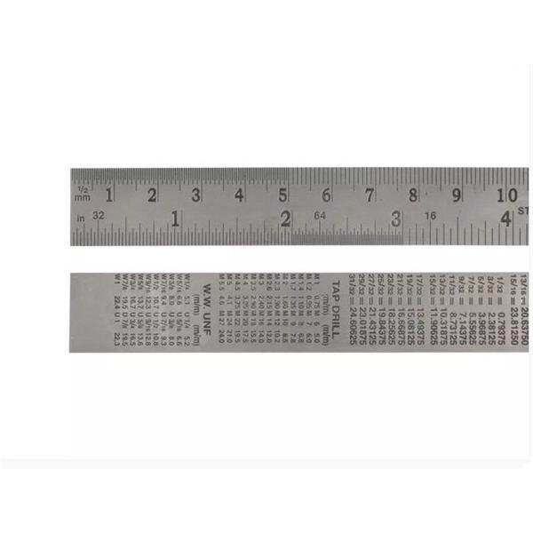 These Faithfull flexible stainless steel rule with permanently etched metric and inch readings. The rule is graduated in 16ths, 32nds and 64ths of an inch on one side and 0.5 and 1mm on the other. With handy conversion tables etched on the reverse and hanging holes for easy storage.