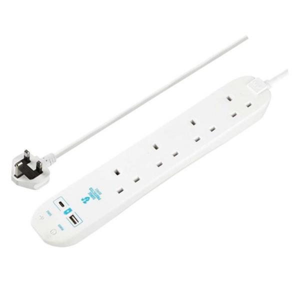 • 4 safety shuttered sockets which automatically close when not in use preventing the insertion of foreign objects. Built-in USB protection from overvoltage and short circuiting.